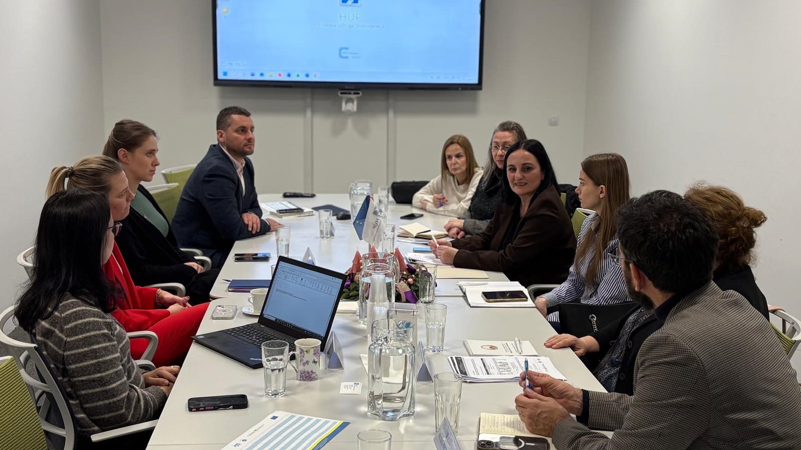 U prostorijama Hrvatske udruge poslodavaca održan je radni sastanak s delegacijom Ministarstva gospodarstva i rada Republike Sjeverne Makedonije te novoformirane nacionalne Agencije za inovacije, znanstveni, tehnološki razvoj i poduzetništvo (INOVA), institucije ekvivalentne hrvatskom HAMAG-BICRO-u. Sastanak je održan u sklopu EU projekta „EU for SME Development”, koji za korisnika – Ministarstvo gospodarstva i rada Republike Sjeverne Makedonije – provodi konzorcij predvođen IBF Impactom iz Belgije.